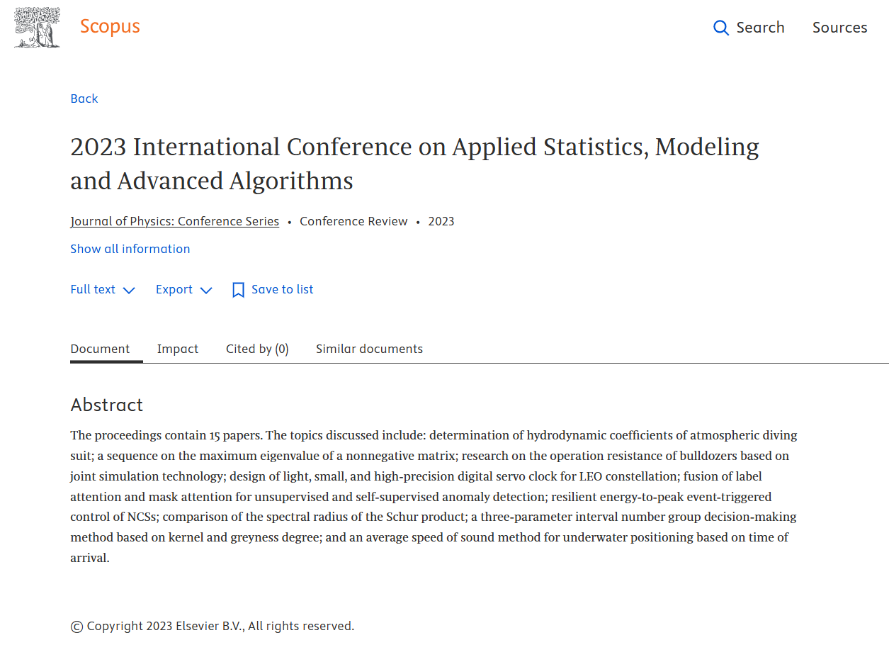 ASMA 2023: Publication |EI Compendex |Scopus
