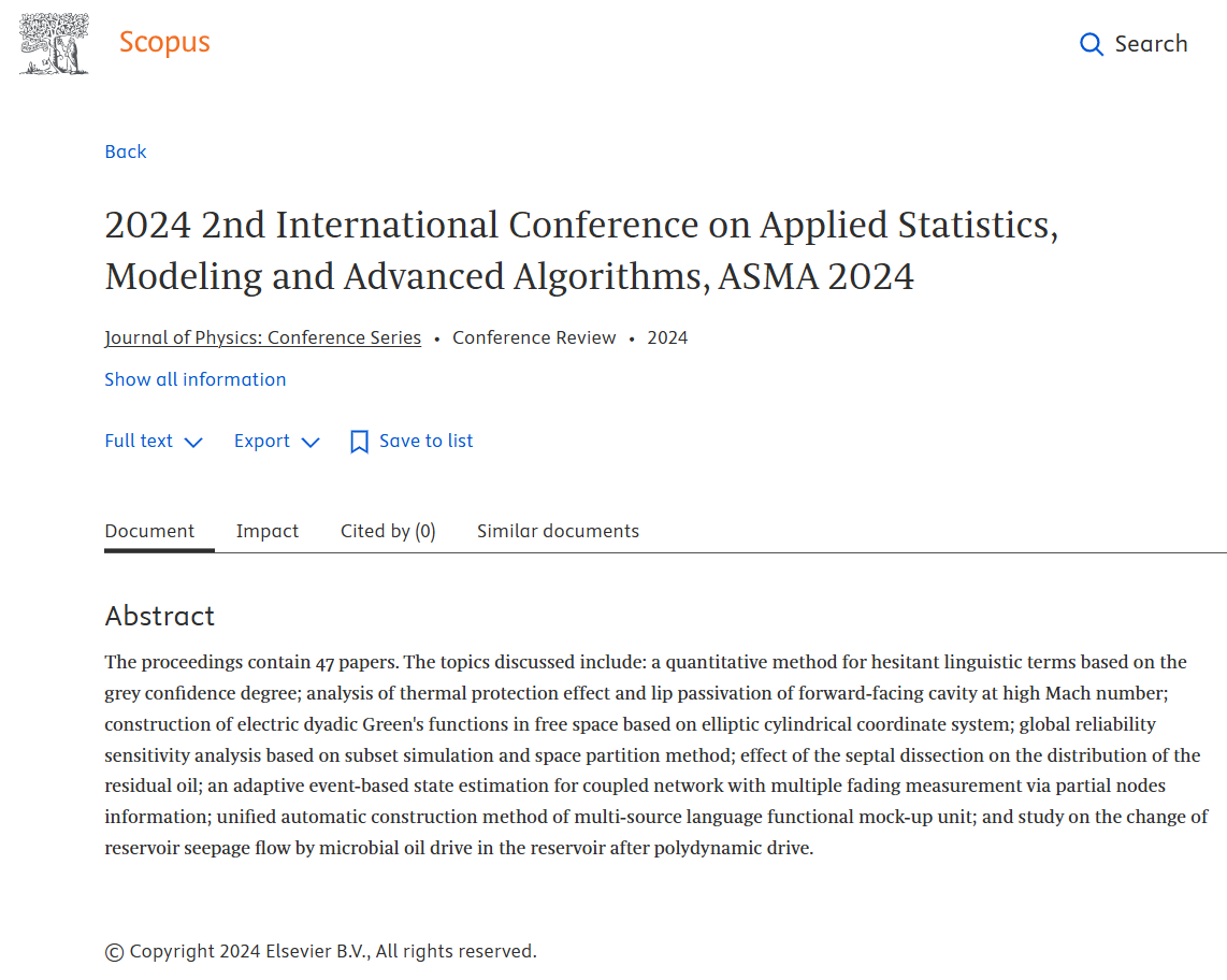 ASMA 2024: Publication|EI Compendex | Scopus